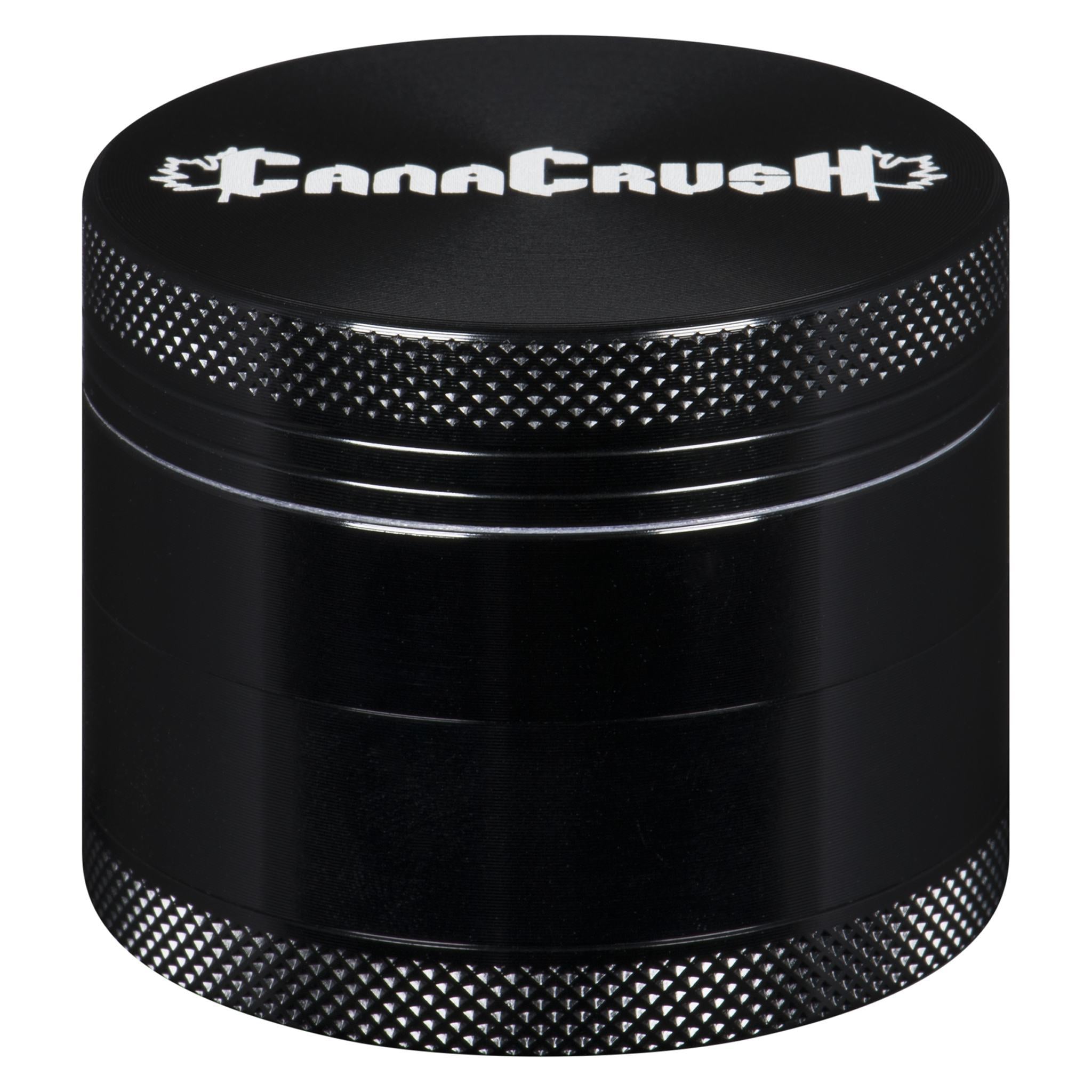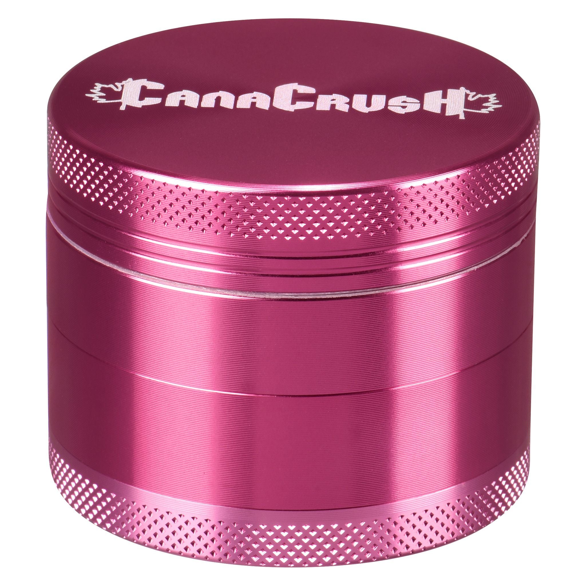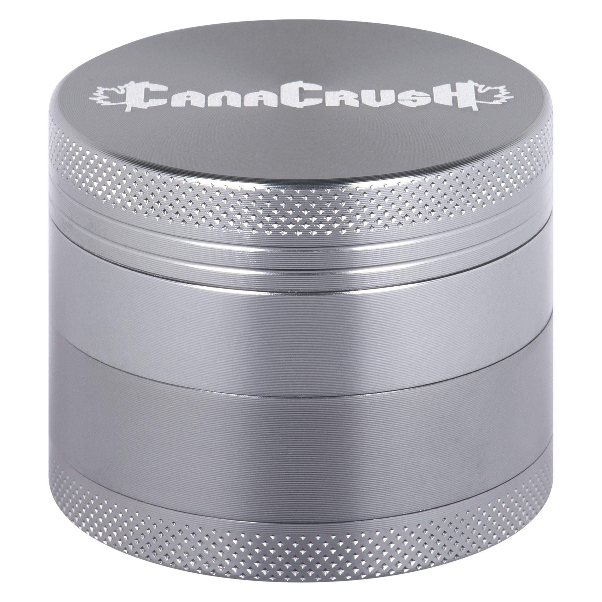 CannaCrush's four-piece 2" grinder features 28 specially designed aluminum diamond-cut teeth and 24 grinding holes (made from aircraft-grade anodized aluminum on CNC machines) that are scratch resistant, which prevents flaking or pealing. Its knurled grip makes grinding easier, and the lid stays in place with a neodymium magnet that also keeps the odour locked inside and maintains freshness. The chamber contains an advanced micron mesh screen to filter the kief. Every CannaCrush premium grinder is equipped with a kief scraper, and a lifetime warranty. This grinder is available in black or grey.